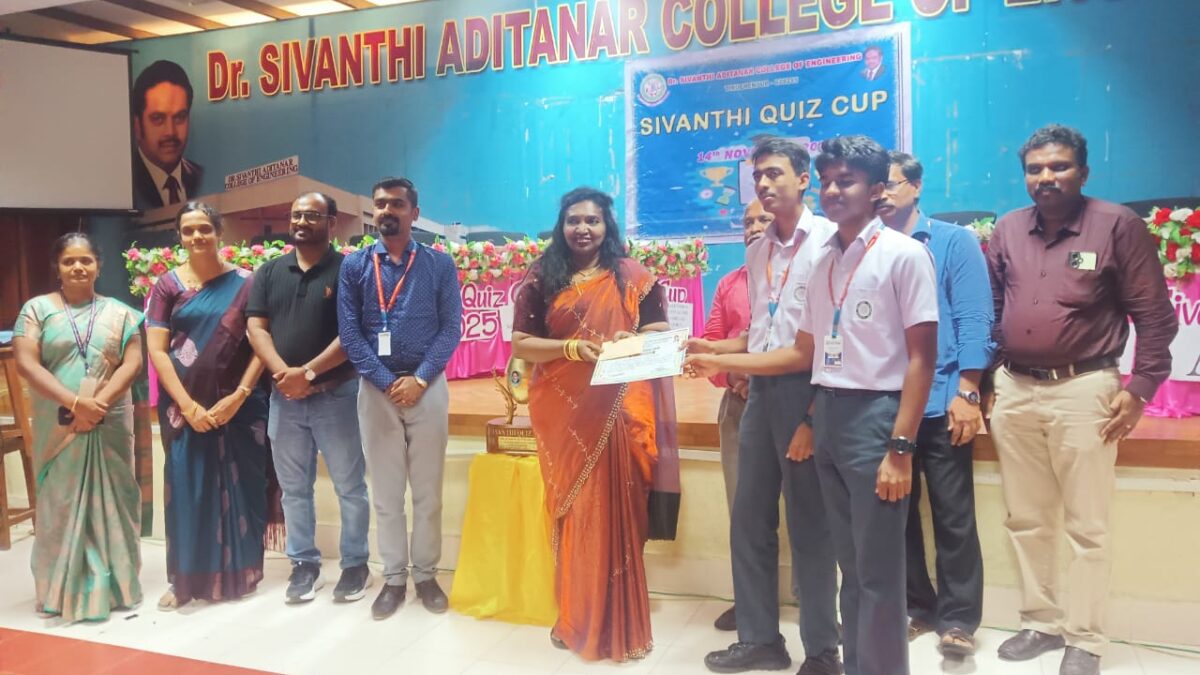 January 8, 2026R. Varun Keathara and Hari Shankar U. of Class XI, achieved a remarkable hat-trick victory by winning first prize in the 22nd Sivanthi Quiz Cup, a prestigious State Level Quiz held by the Alumni Association of Dr. Sivanthi Aditanar College of Engineering, Tiruchendur. Competing against 24 schools, they topped the quiz with a cash award of ₹5000/-.