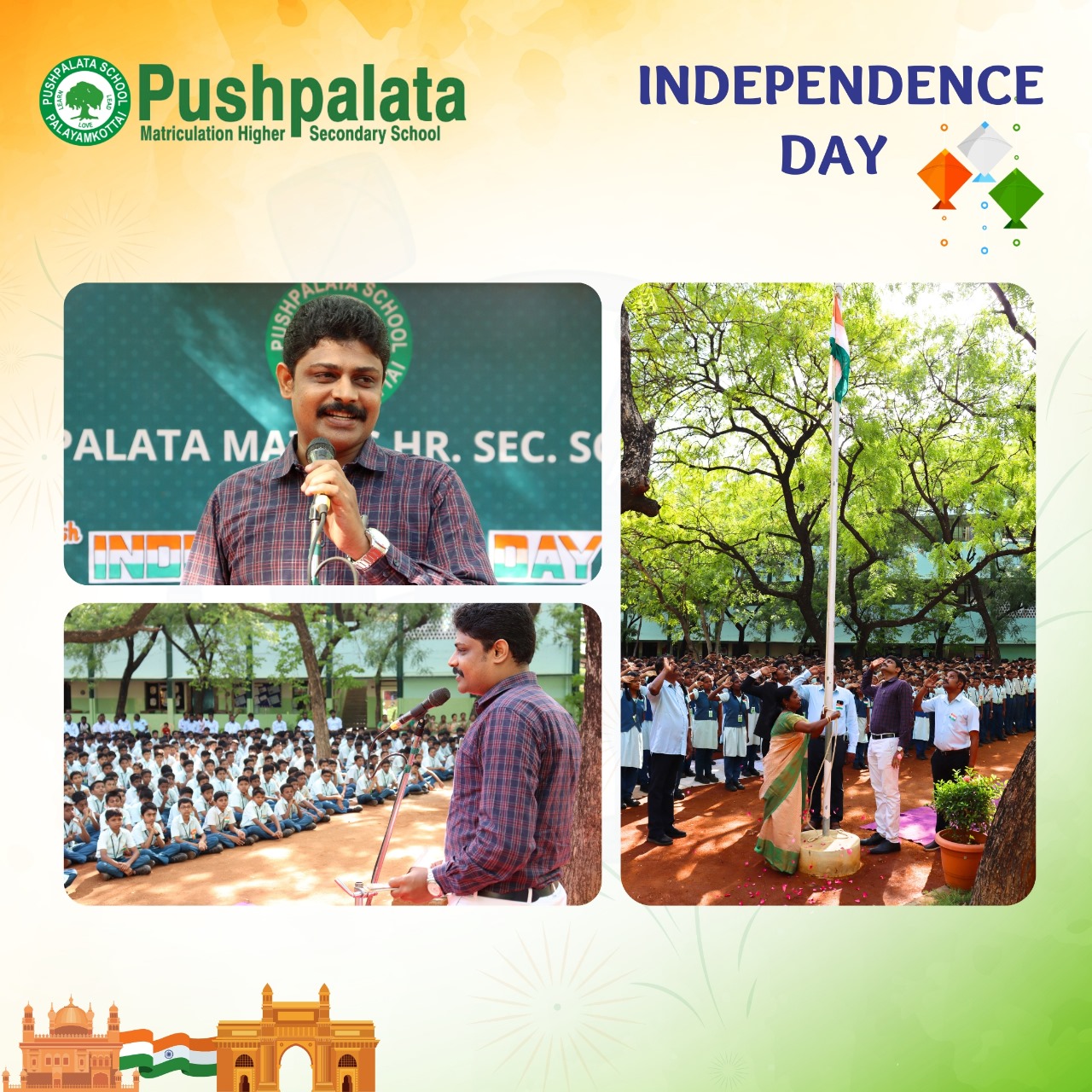 Pushpalata Schools celebrated the 77th Independence Day on the 15th August 2023 at the school premises. Dr. D. Abiya Chelliah graced this auspicious occasion as the Chief Guest. He is an Assistant Professor and Editor and is currently working at St. John’s College, Palayamkottai.