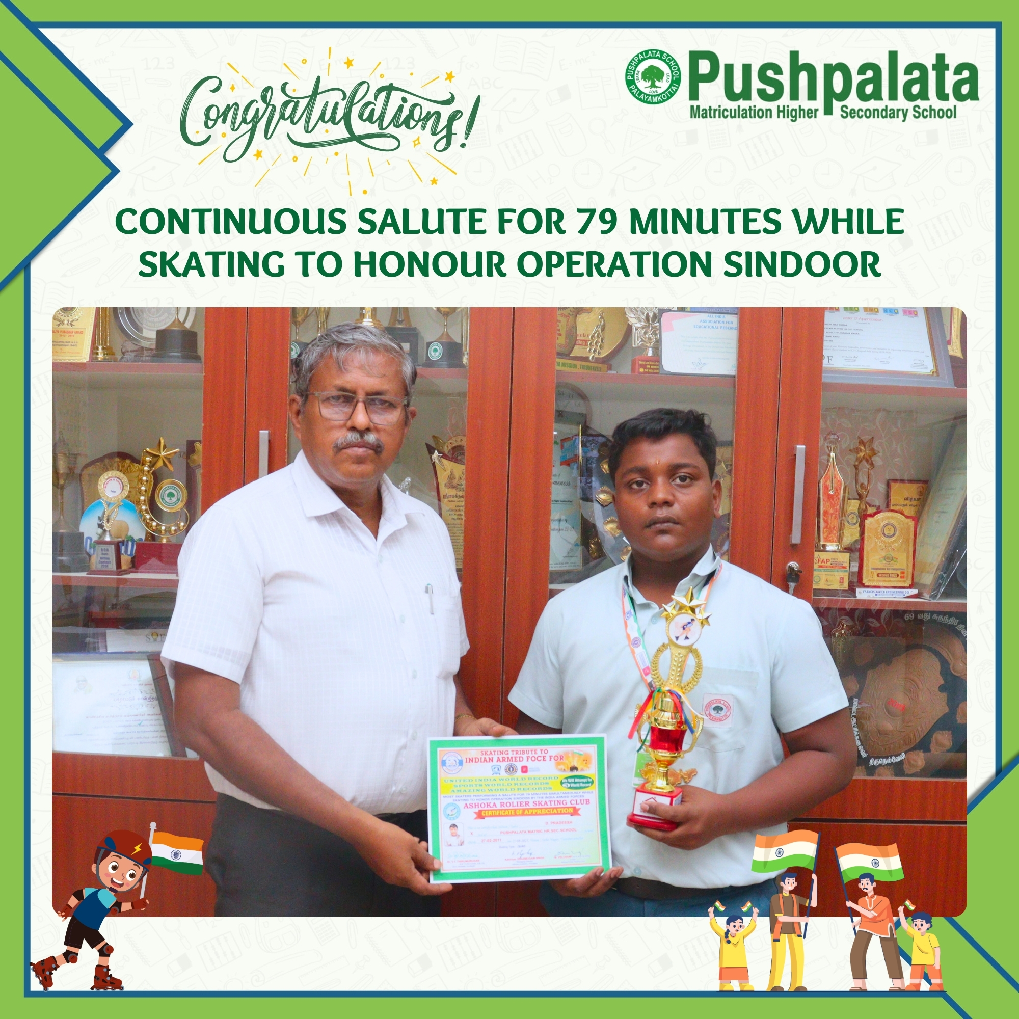 while skating to honour Operation Sindoor. We proudly congratulate Pradeesh D of Class 10 of