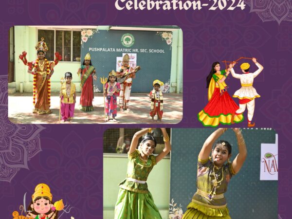 PushpalataMatric Hr. Sec. School celebrated Navaratri with great enthusiasm and fervour, blending cultural and religious...