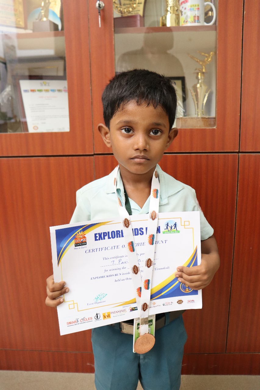 Explore Play School conducted “Explore Kids Run” on 8th October 2023 at Anna Stadium, Tirunelveli. We are glad to share that T Pavithran of Class 1 participated in this run and secured the 10th place.