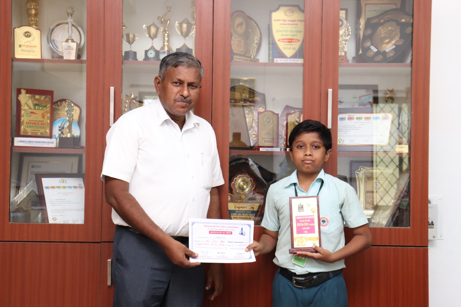 The Tirunelveli District Chess Association conducted a Chess Tournament on 3rd December 2023 at Meenakshipuram, Tirunelveli. We are happy to share that C Karthikeya of Class VII participated in this Tournament and secured the Gold medal in the Junior Boys Category.