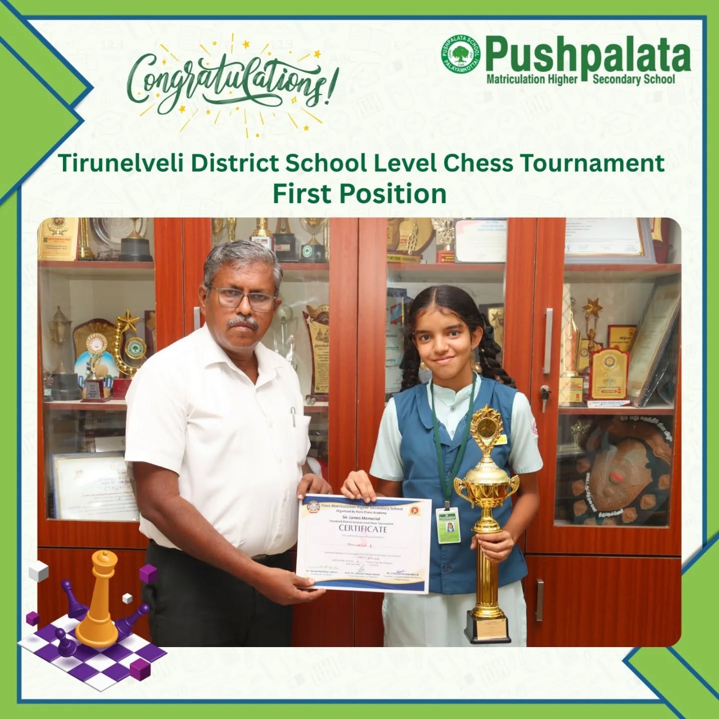 In the Sir James Memorial Tirunelveli District School Level Chess Tournament,