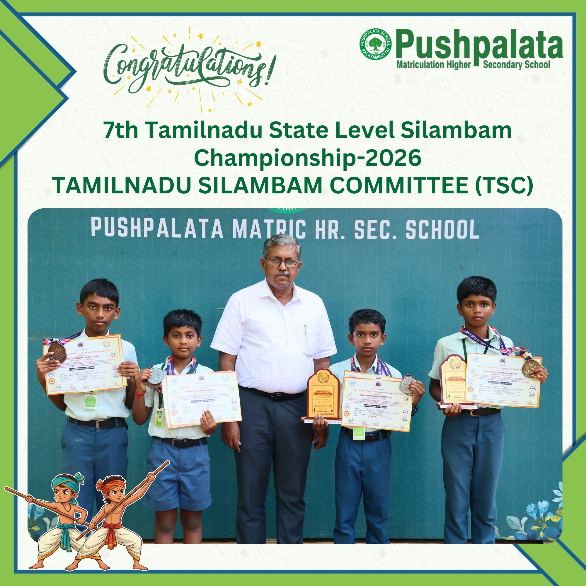 Proud moment for Pushpalata Matric Hr.Sec School! Our Silambam champions showcased