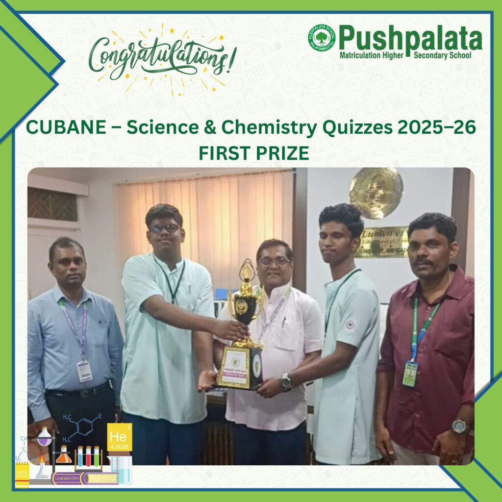 their brilliance in the Chemistry Quiz and secured the First Prize, proudly bringing