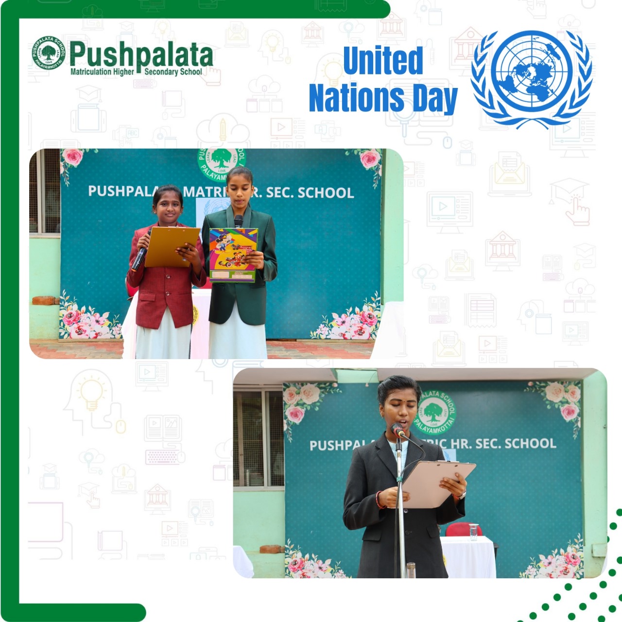 KamarUnited Nations Day, on 24 October, marks the anniversary of the entry into force in 1945 of the UN Charter. Individuals and nations are drawn towards the United Nations Day 2023 theme of “Equality, Freedom and Justice for All.” As a mark of respect and appreciation to this world organization, a special assembly was organized by the students of Class VI to VIII. Various programs were conducted to create an insight about the importance of this organisation. The role play and the Mock UN General Assembly performed by the students were truly informative and inspiring.aj College and Thoothukudi District Chess Association organized 2nd KC State Level Bi-Cycle Chess Tournament – 2023. We are proud to announce that our student Madhumitha G of class 6 secured the first position in the U-11 Girls Category in the tournament.