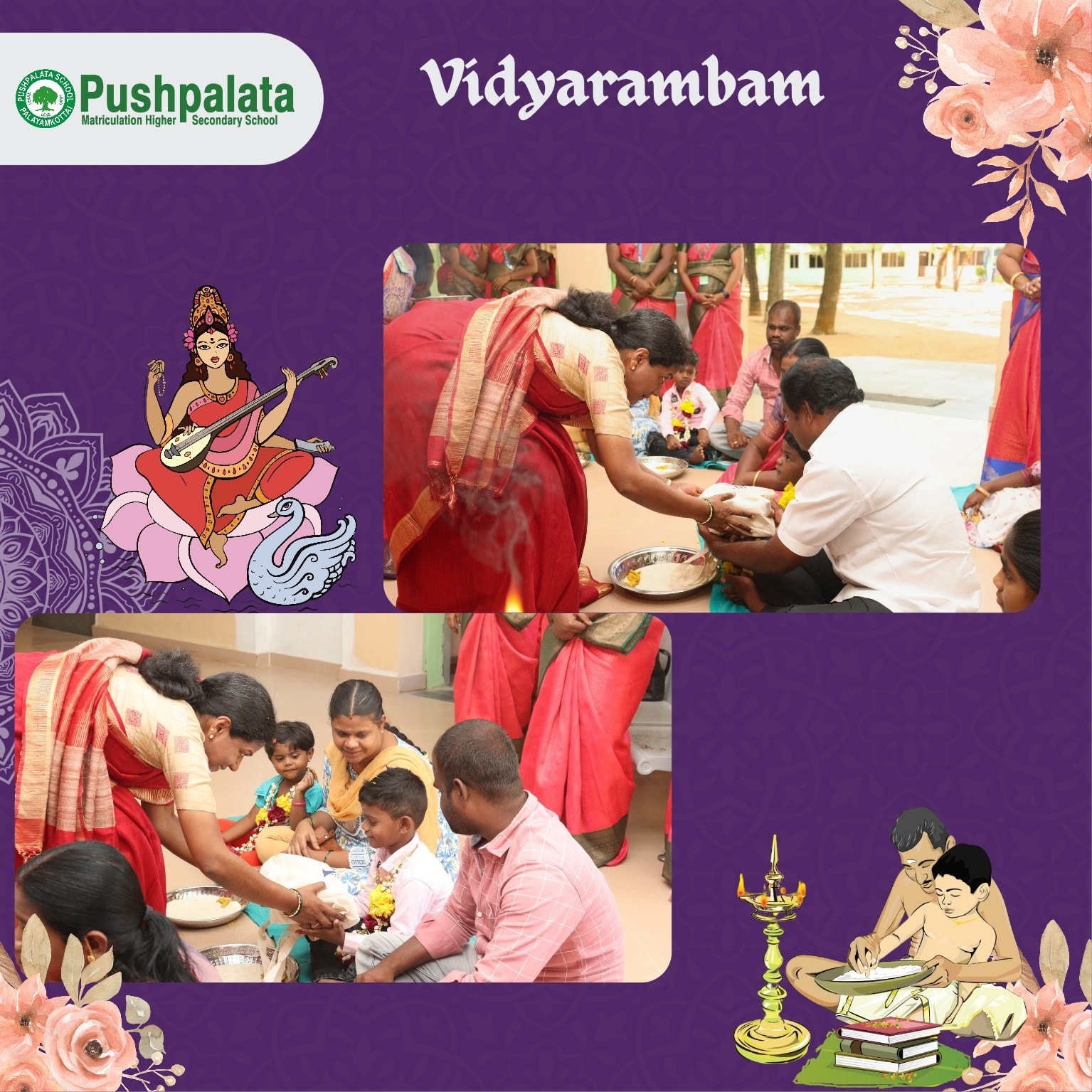 On this sacred day of Vijayadasami, our school celebrated Vidhyarambham with devotion,